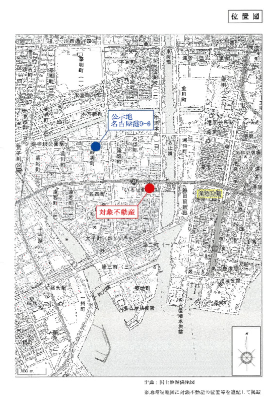 地下鉄名港線「築地口」駅 西方 道路距離 約950m |