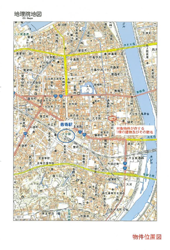 JR日豊本線「大分」駅 北東方 約1.0km(道路距離) |