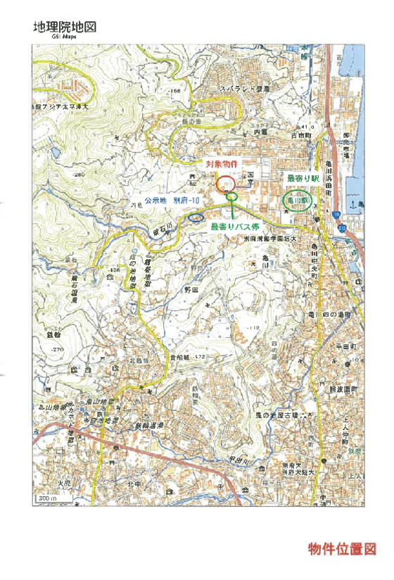 評価書上の交通 JR日豊本線「亀川」駅 西方 約1.1km(道路距離) 別府市コミュニティバス「別府医療センター入口」停留所 北西方 約110m